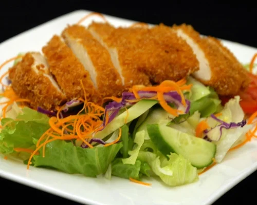 Crumb breaded fried chicken, steamed broccoli in Katsu sauce.