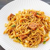 Stir-fried thin Japanese soba noodle with mixed veggie in soba sauce.