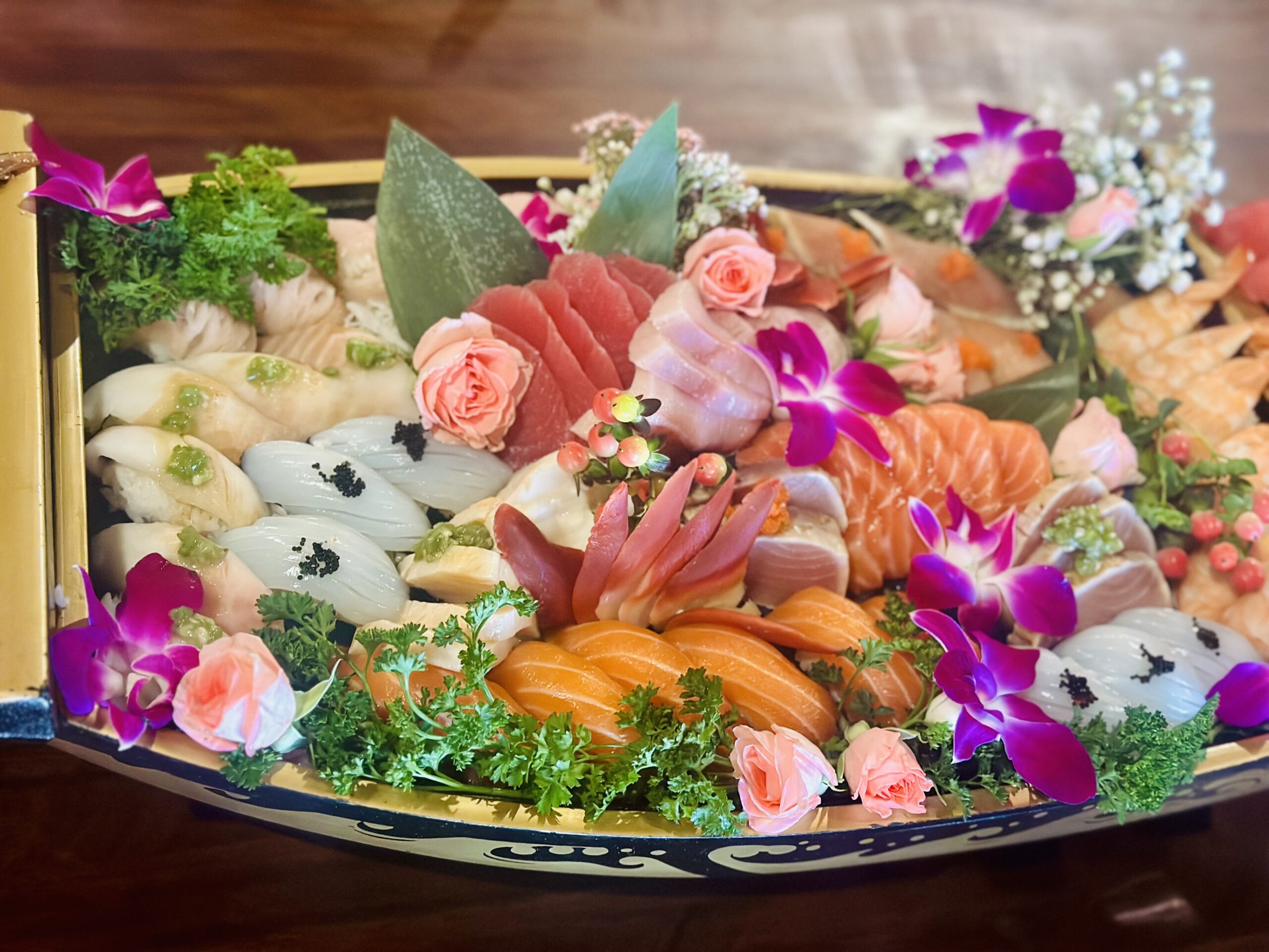 Seaweed salad, 12pcs of sushi, 12pcs of sashimi and special rolls