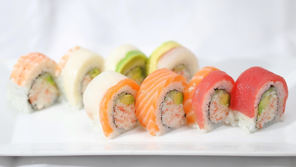 California roll base topped with assorted fresh fish.