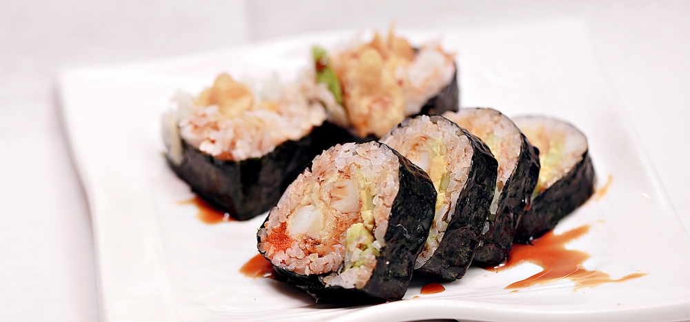 Set of two roll choices of tuna, salmon, yellow tail and tempura.