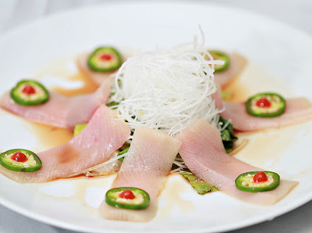 Thin slices of yellowtail and jalapeños topped with yuzu sauce.